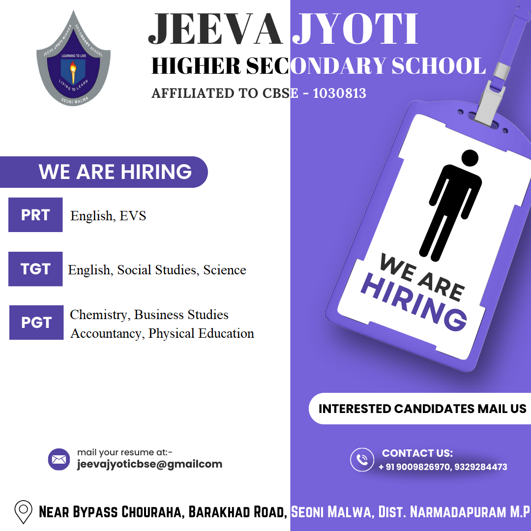 Jeeva Jyoti Higher Secondary School Barakhad Kala Managed by Jeeva Jyoti Shiksha Samiti Seoni Malwa. Mr. Praveen Panicker is the chairman. Jeeva Jyoti Higher Secondary School, Barakhad Kala has been started in year 2015 with the NCERT curriculum is affiliated to CBSE Board. The school is located far from the madding crowd of the city which provides safe secure and comfortable ambience to its scholars. The school has with stood the Last of time and each student has become a pillar of this institution. The institution is known for its excellence in discipline academic and total develop of life skill. The school is private unaided and does not receive any grant via from any govt. The school is affiliatted to CBSE with registration no. 1030813